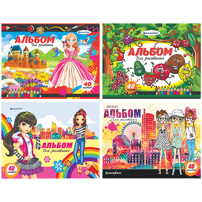 - Альбом для рисования 40л на склейке для девочек Darvish плотность 100гр/м2 РБ,DV-2741