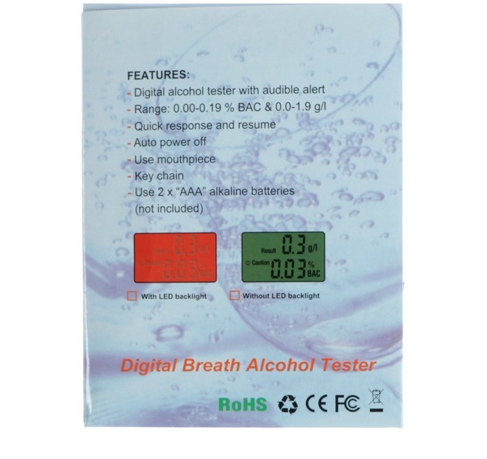 С помощью этого стильного и недорогого алкотестера Вы всегда сможете определить, можно ли садиться за руль. Несомненным преимуществом этой модели является компактность и малый размер, что позволит алкотестер всегда носить с собой, а также хорошо читаемый цифровой светодиодный дисплей для отображения результатов. Алкотестер имеет мундштук.