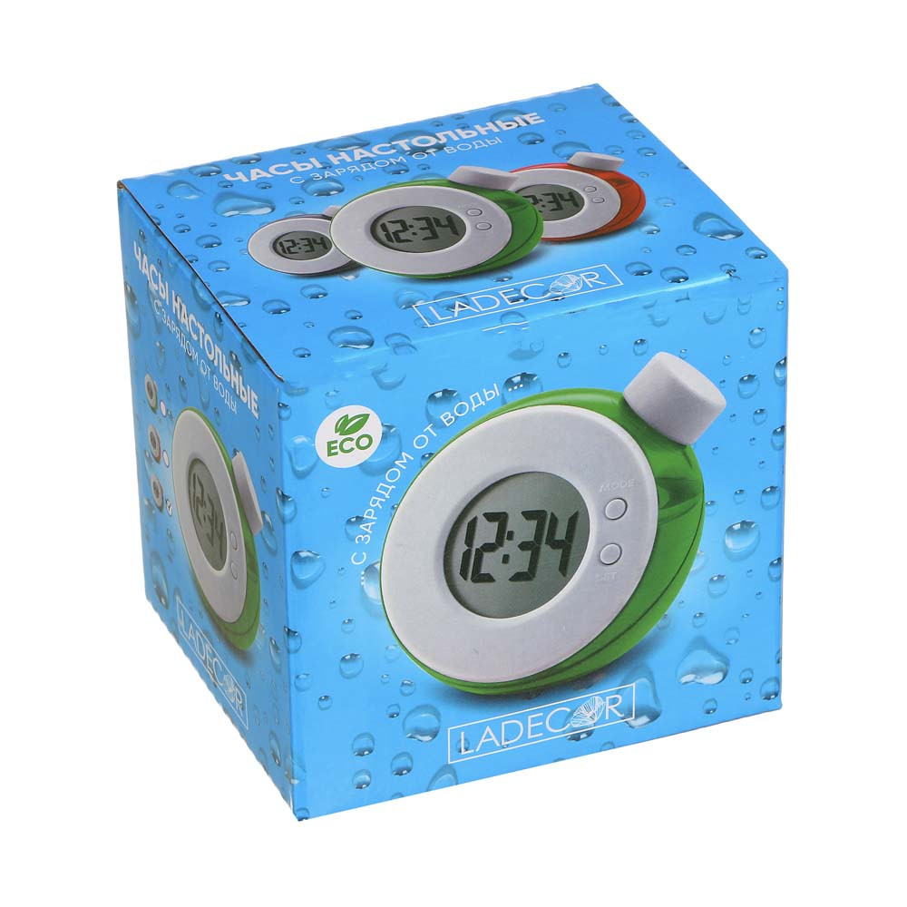 Часы настольные ЭКО с зарядом от воды, 6,8х8,2х8,3см, пластик, 3 цвета 529-205