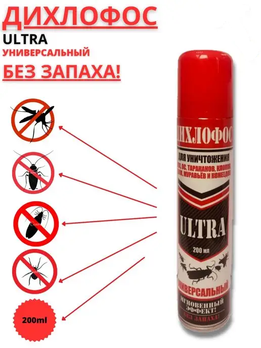 Дихлофос ULTRA - мощный инсектицид, выпускаемый в красной банке объемом 200 мл. Это эффективное средство для борьбы с насекомыми предназначено для быстрого уничтожения широкого спектра вредителей, включая мух, комаров, тараканов, муравьев и других ползающих и летающих насекомых. Аэрозольный спрей обеспечивает равномерное и полное покрытие, что делает его идеальным для использования в домах, офисах и других помещениях, требующих борьбы с вредителями. Дихлофос ULTRA обеспечивает быстрое действие против насекомых, гарантируя отсутствие вредителей в помещении и повышая комфорт и гигиену.