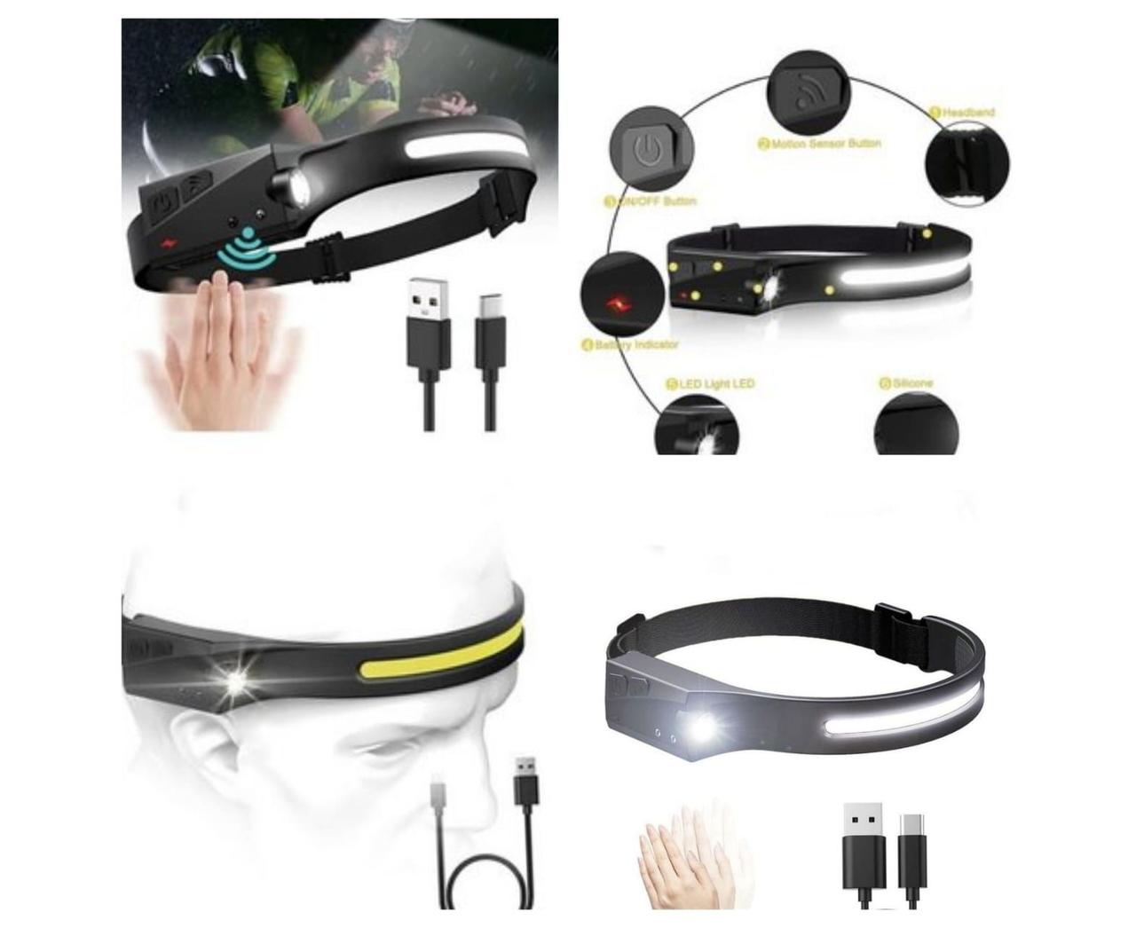Налобный фонарь G28 XPE+COB с сенсором - фонарь аккумуляторный на голову с датчиком движения и двумя отдельными светодиодами. Оба регулируются и имеют два режима работы - максимальный, экономный.