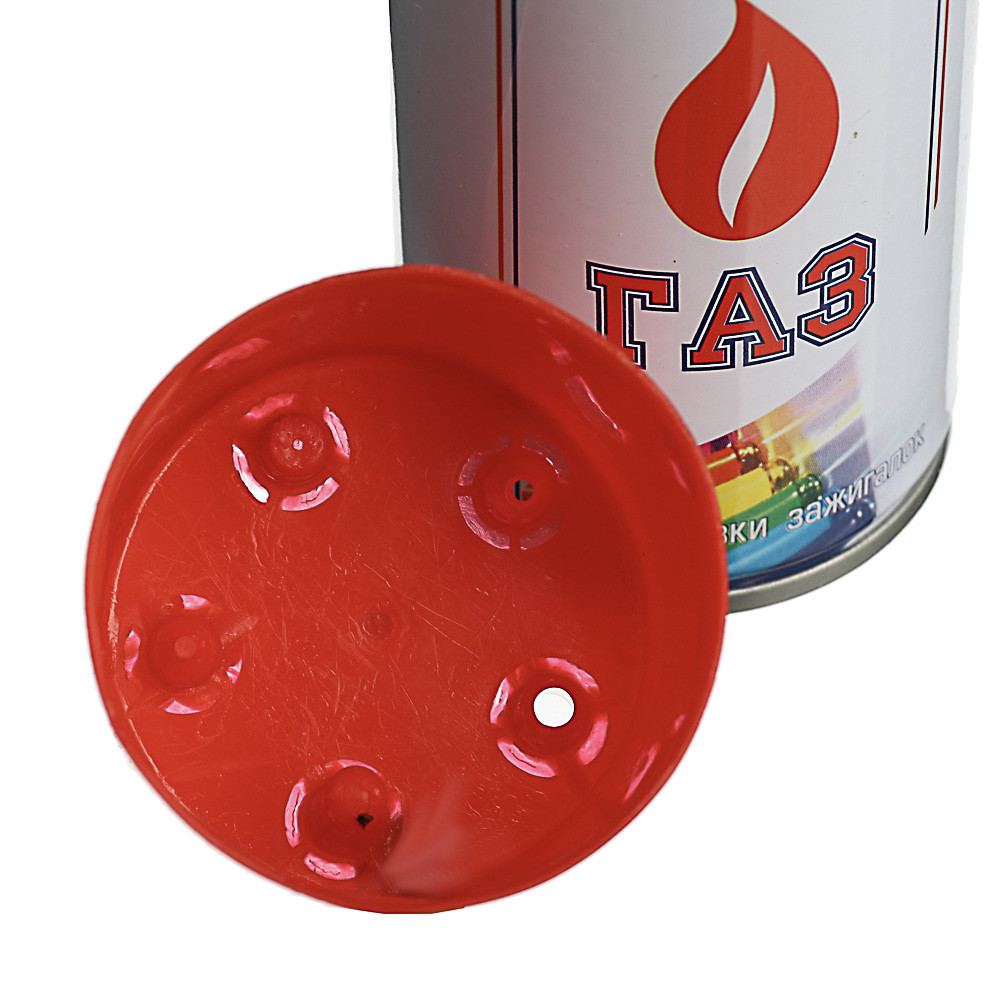 Газовый баллон с насадками, позволяют заправлять различные модели зажигалок, а также использовать газ для портативных газовых приборов, например, обогревателей, паяльных ламп, светильников, газовых плиток и прочих нагревательных приборов. |