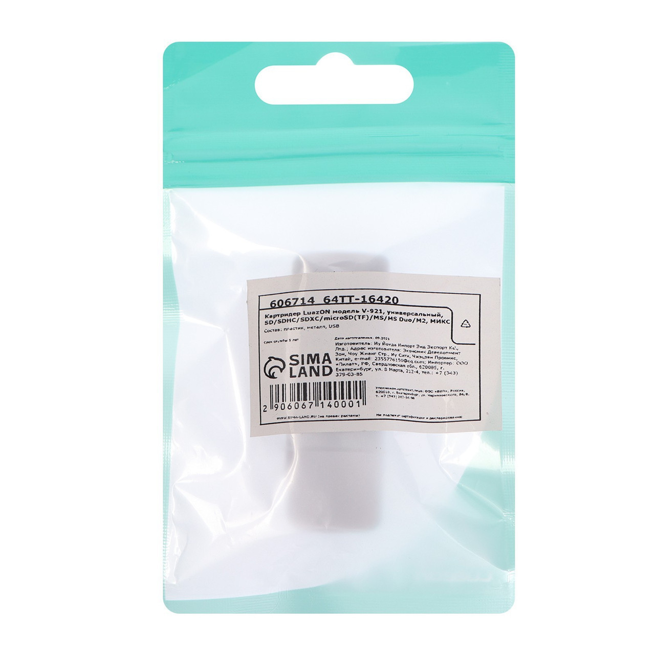- Картридер Luazon V-921, универ., SD/SDHC/SDXC/microSD(TF)/MS/MS Duo/M2, МИКС 606714