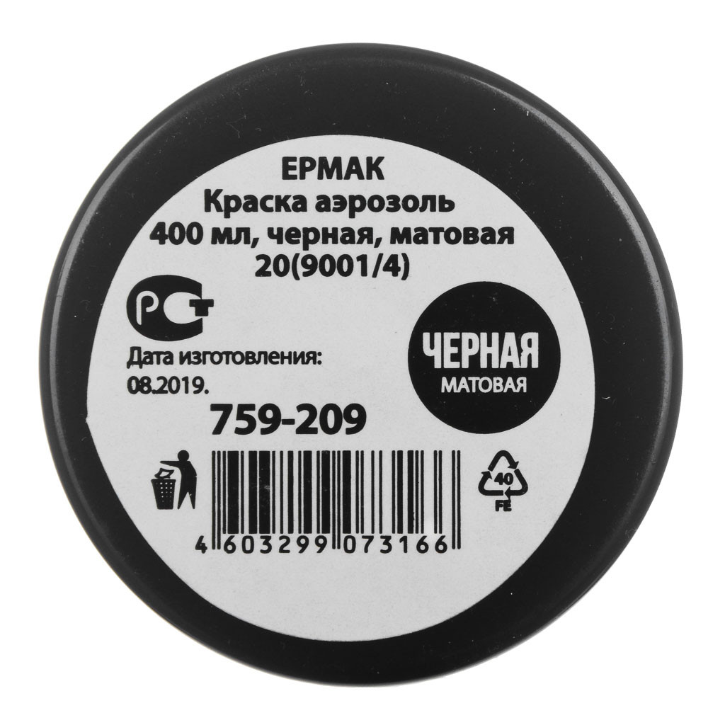 - Краска аэрозоль 400мл, черная, матовая 20(9001/4) ЕРМАК 759-209