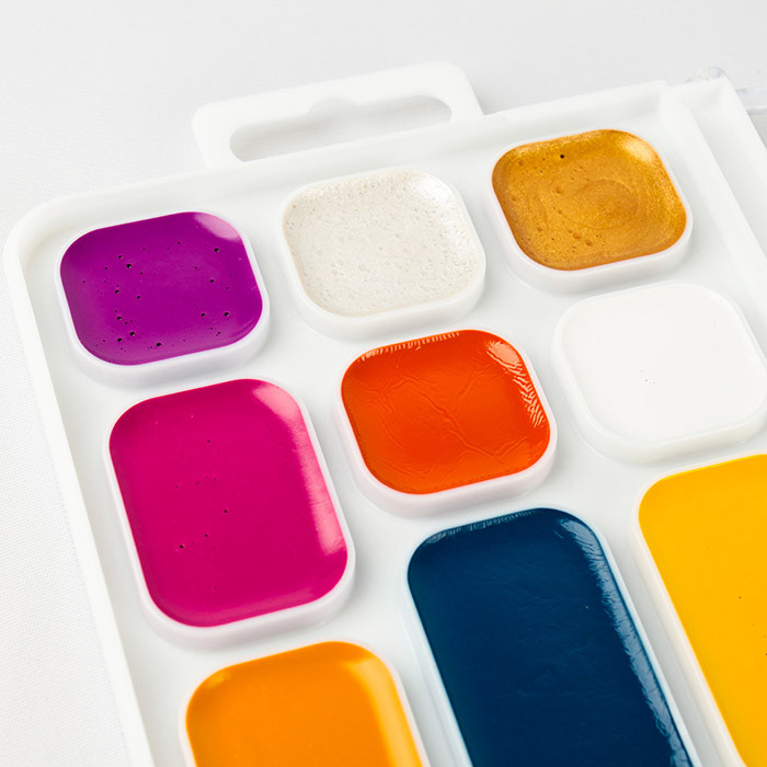 Высококачественная краска для детского творчества, изготовленная по классической рецептуре. В акварели есть мёд, что значительно улучшает её качество и внешний вид. Пластмассовое донышко набора акварели содержит увеличенные кюветы с часто используемыми цветами В наборе две кюветы акварели золотого и серебряного цветов. Размер коробки 10,5*21,5см с европодвесом