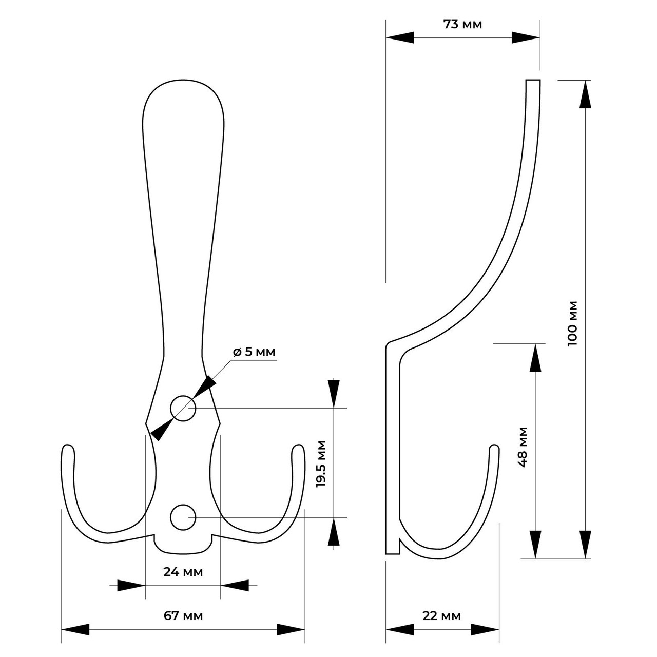 - Крючок мебельный KM301AB, трехрожковый, цвет бронза 1866161