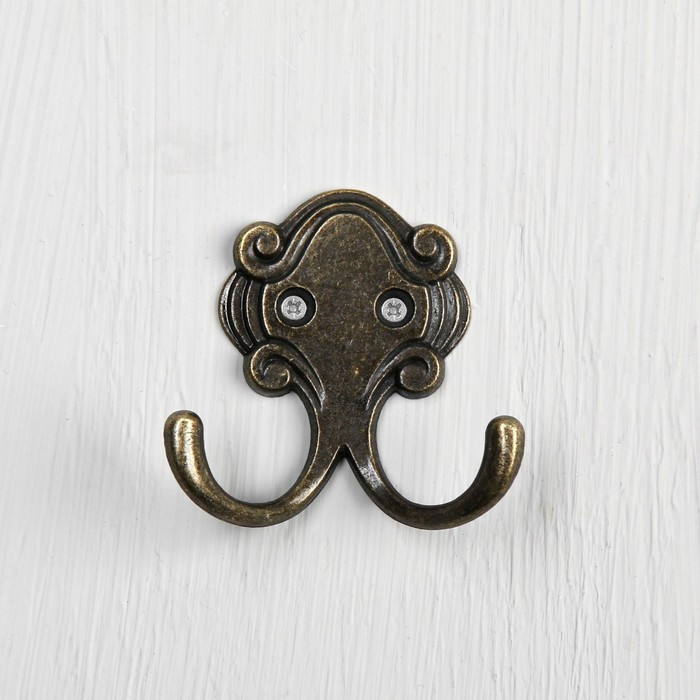 - Крючок мебельный KM205AB, двухрожковый, цвет бронза 1866211
