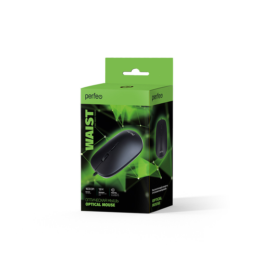 - Мышь проводная Perfeo Waist, 4кн, DPI 800-1600, USB, черн. PF_B4895