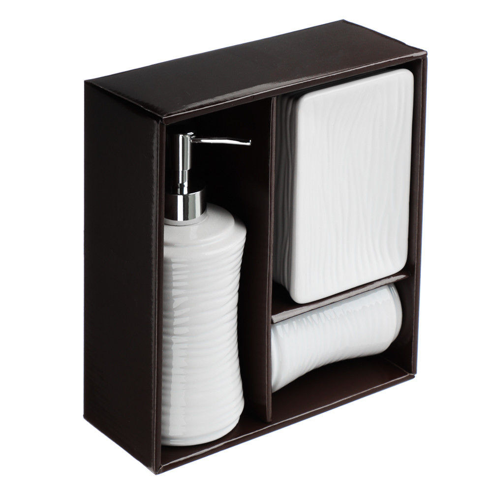 • набор керамических аксессуаров для ванной: дозатор + стакан + мыльница;