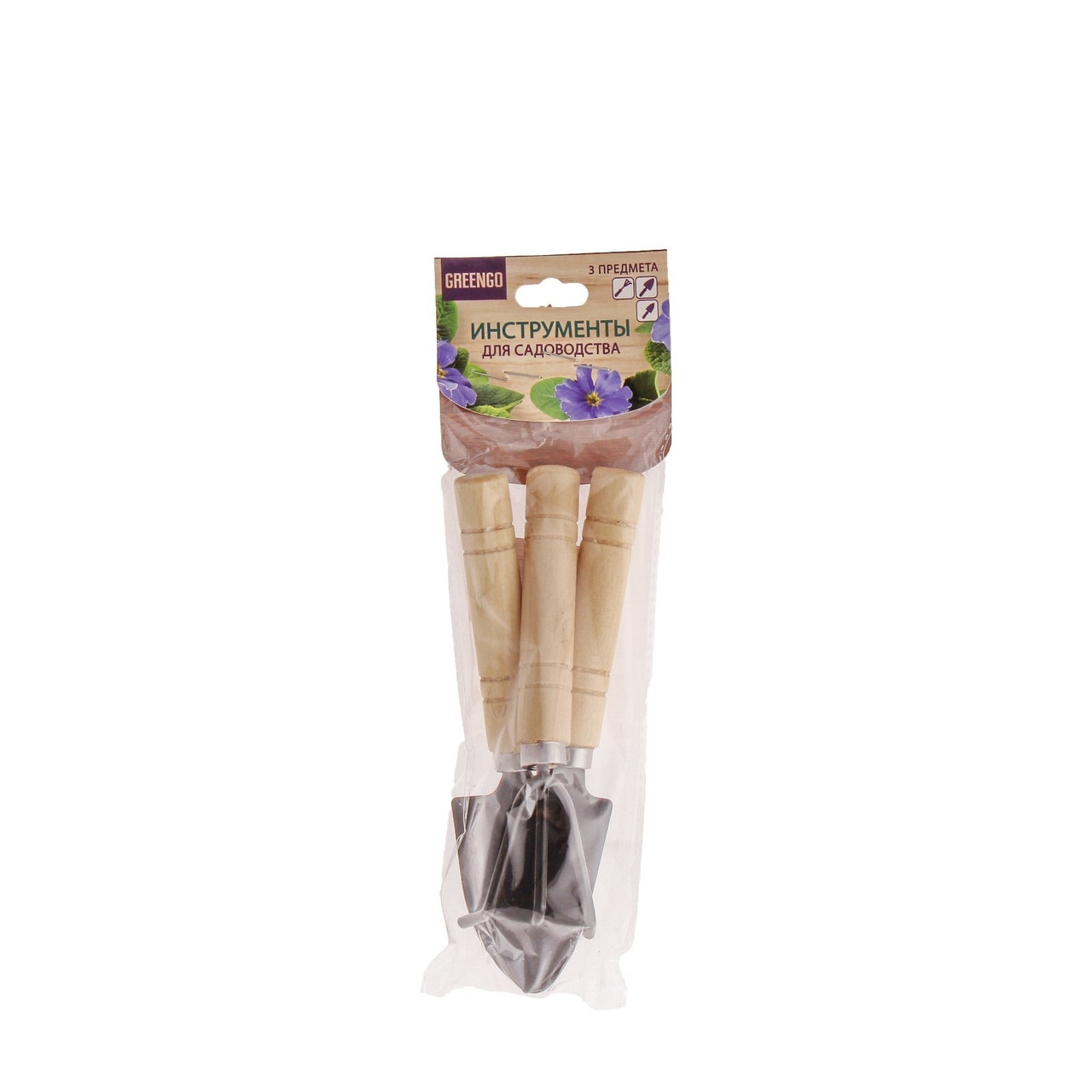 - Набор садового инструмента, 3 предмета: рыхлитель, 2 совка, длина 15 см, деревянные ручки (малый)