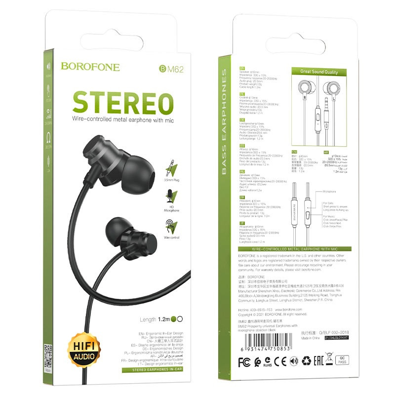 BOROFONE BM62 Prosperity, универсальные наушники с микрофоном, аудио штекер 3.5мм, кабель 1.2м