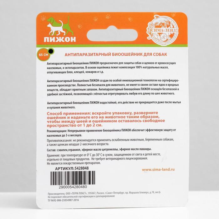 Биоошейник антипаразитарный для собак от блох и клещей, 65 см 5428048