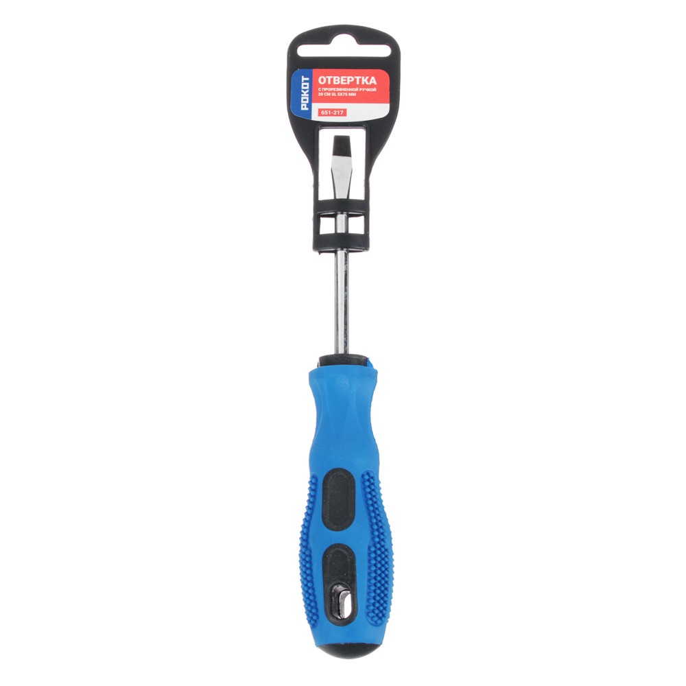 - Отвертка с прорезиненной ручкой SL 5х75мм РОКОТ 651-217