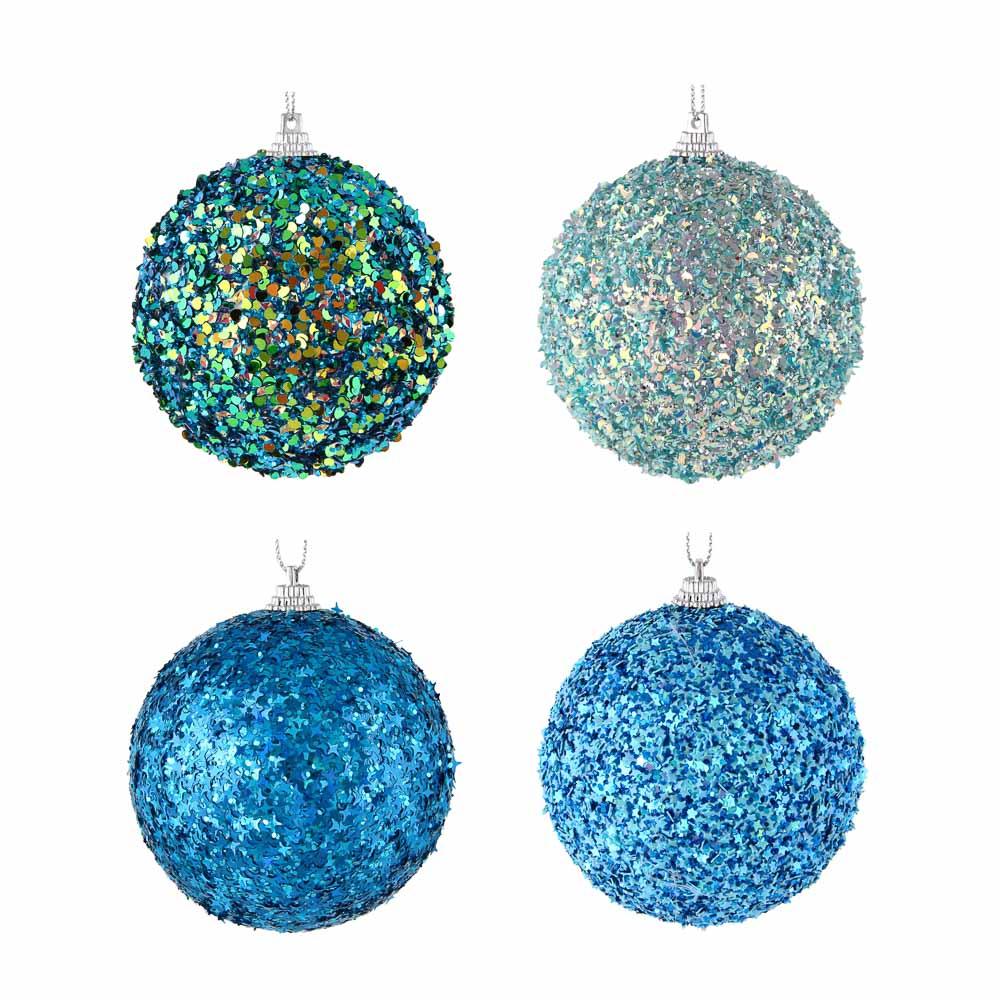 - Подвеска шар с декором, 8 см, 4 цвета, сине-бирюзовые оттенки, 374-345