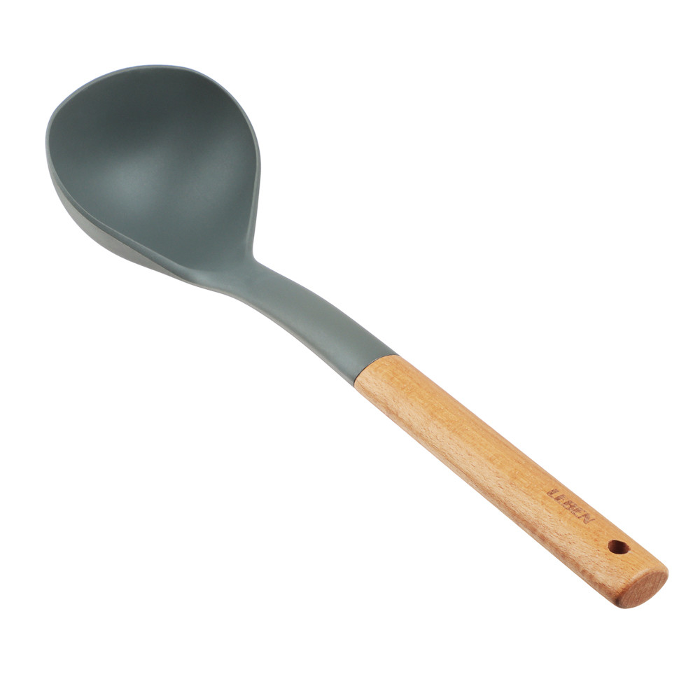 Половник LEBEN Майнц с деревянной ручкой и рабочей частью из нейлона – идеальное сочетание для комфортной работы на кухне. Нейлон не царапает поверхности и не вступает в реакцию с продуктами, обеспечивая безопасность и качество приготовления пищи. Деревянная ручка приятна на ощупь и не скользит в руке, делая работу с половником максимально удобной. Этот кухонный аксессуар станет незаменимым помощником в вашем арсенале кухонных принадлежностей.