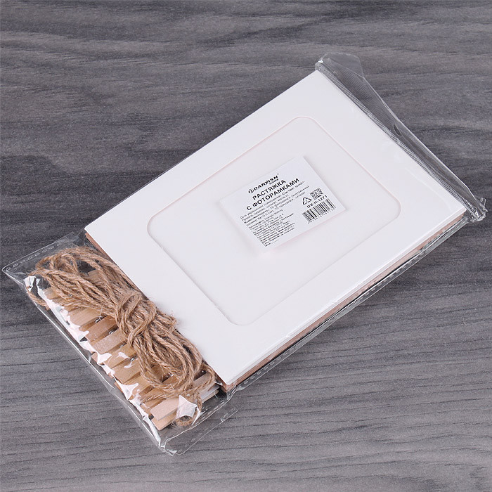 - Растяжка с фоторамками крафт 9*13см (10 бум.рамок + 10 прищепок + шпагат) набор, DV-H-1272