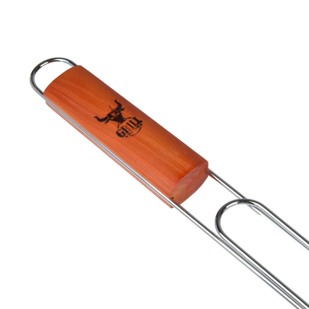 Хромированная решетка для гриля на мангал предназначена для запекания мяса или рыбы. Изготовлена из жаропрочного материала, не деформируется от воздействия высоких температур. Ручка с деревянной рукояткой, которая позволяет защитить руки от ожогов и обеспечивает удобный хват при переворачивания продуктов.