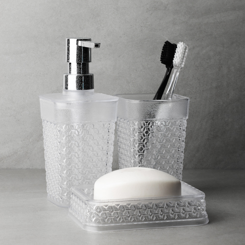 Стакан для ванной из прочного прозрачного пластика серии “Горный хрусталь” идеально сочетается со стильный дозатором для жидкого мыла и мыльницей данной коллекции. Лаконичный стакан предназначен для хранения зубных щеток и паст. Прочный рифленый пластик устойчив к царапинам и влаге, легко очищается и обеспечивает гигиеничность. Бесцветный прозрачный пластик идеально впишется в ванную любого дизайна. |