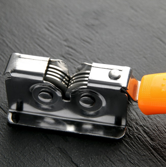 Универсальная точилка для заточки обеспечивает многолетнюю эксплуатацию изделия благодаря высококачественным резцам из твердого сплава (карбид вольфрама), имеющим высокую износостойкость. Применяется для заточки ножей, ножниц и др. режущих предметов.