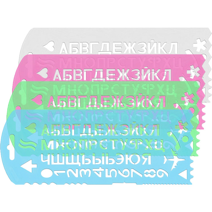 Трафарет букв, цифр и символов пласт. 4цвета СТАММ ТТ31