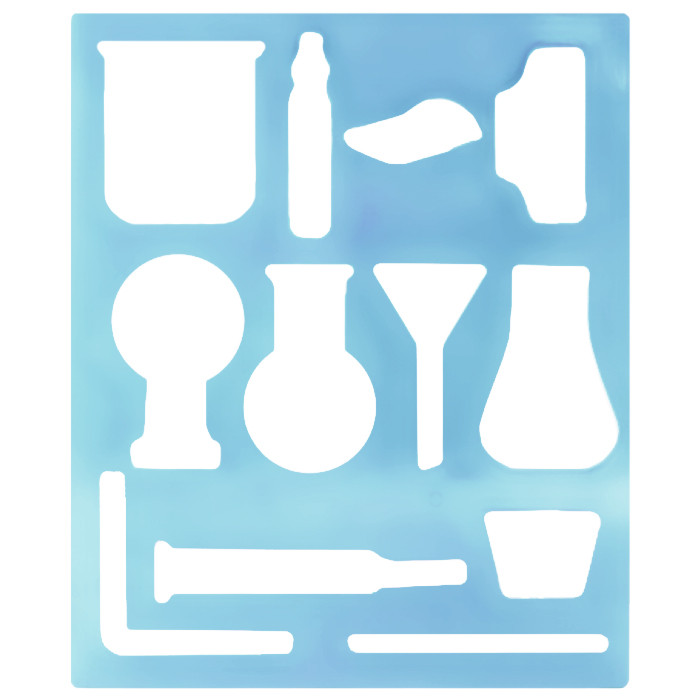 Трафарет предназначен для отрисовки контуров различных принадлежностей для химических опытов.