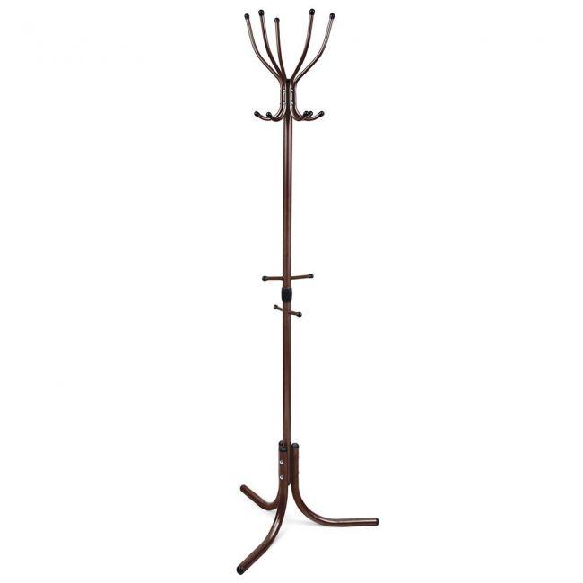 Напольная вешалка из металла предназначена для легкой верхней одежды. Внизу предусмотрены крючки для сумок или зонтов. Современный дизайн вешалки позволяет красиво вписать ее в любой, не менее современный, интерьер. Напольная вешалка прекрасно впишется, как в офисный, так и в домашний интерьер. Изготовлена из специальной стальной мебельной трубы с полимерным покрытием. Изделие упаковано в коробку вместе с необходимой фурнитурой для сборки и подробной инструкцией.